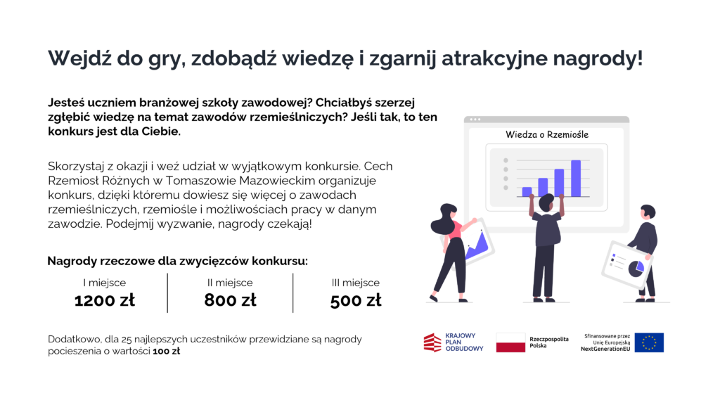 Cech Rzemiosł Różnych w Tomaszowie Mazowieckim ogłasza konkurs WOR – „Wiedza o Rzemiośle”. Celem konkursu jest promocja wiedzy o zawodach rzemieślniczych, rzemiośle i możliwościach pracy w danym zawodzie.